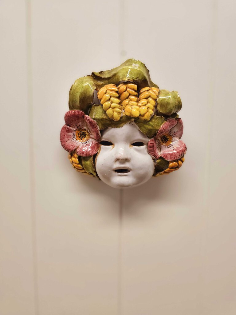 Vintage Italian Majolica pottery Face w/flowers wall hanging