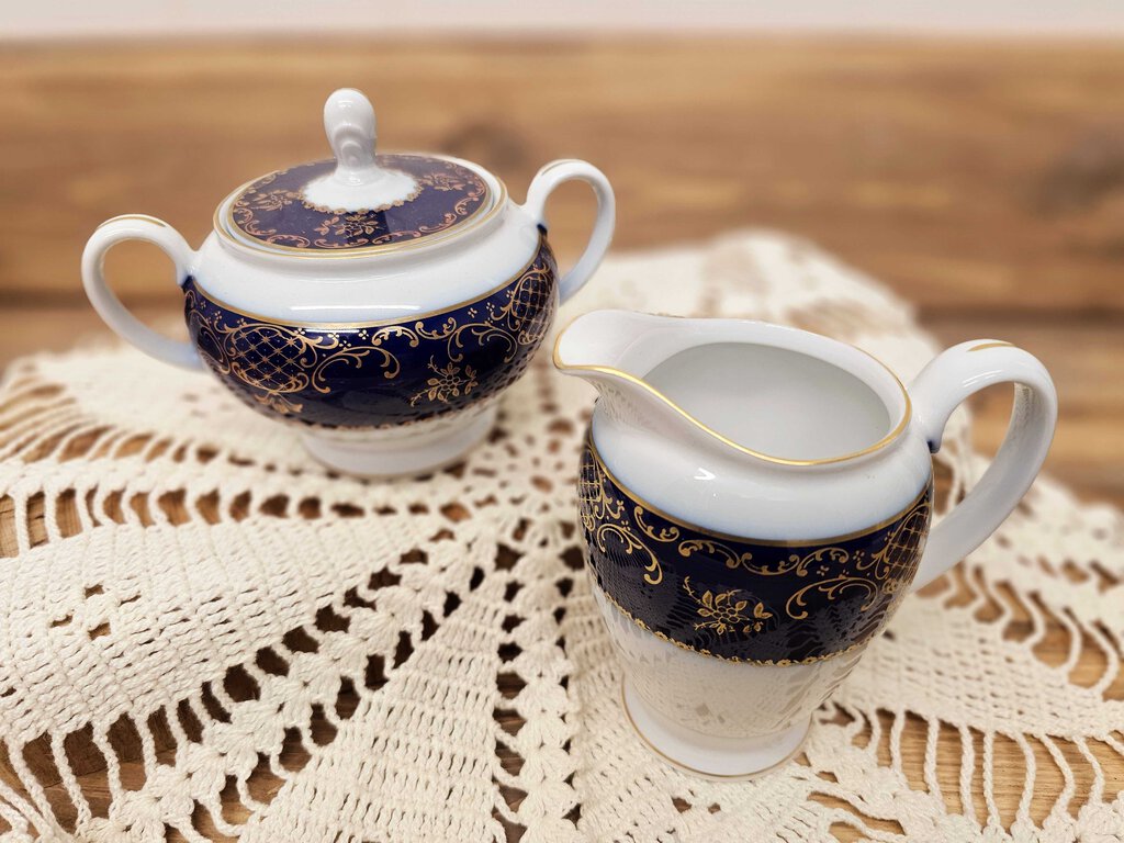 Rosenthal Germany Charlemagne china is a beautiful and elegant dinnerware set known for its exquisite craftsmanship and timeless design. This china features a classic and sophisticated style, with its delicate floral patterns in gold gilding against a cobalt blue background. The fine white porcelain, characteristic of Rosenthal's high-quality work, provides a pristine backdrop for the ornate detailing. The Charlemagne pattern reflects a sense of luxury and tradition, making it a popular choice for formal dining occasions and special celebrations. The durability and artistry of Rosenthal Germany Charlemagne china have made it a sought-after collectible and a symbol of refined taste for generations.
